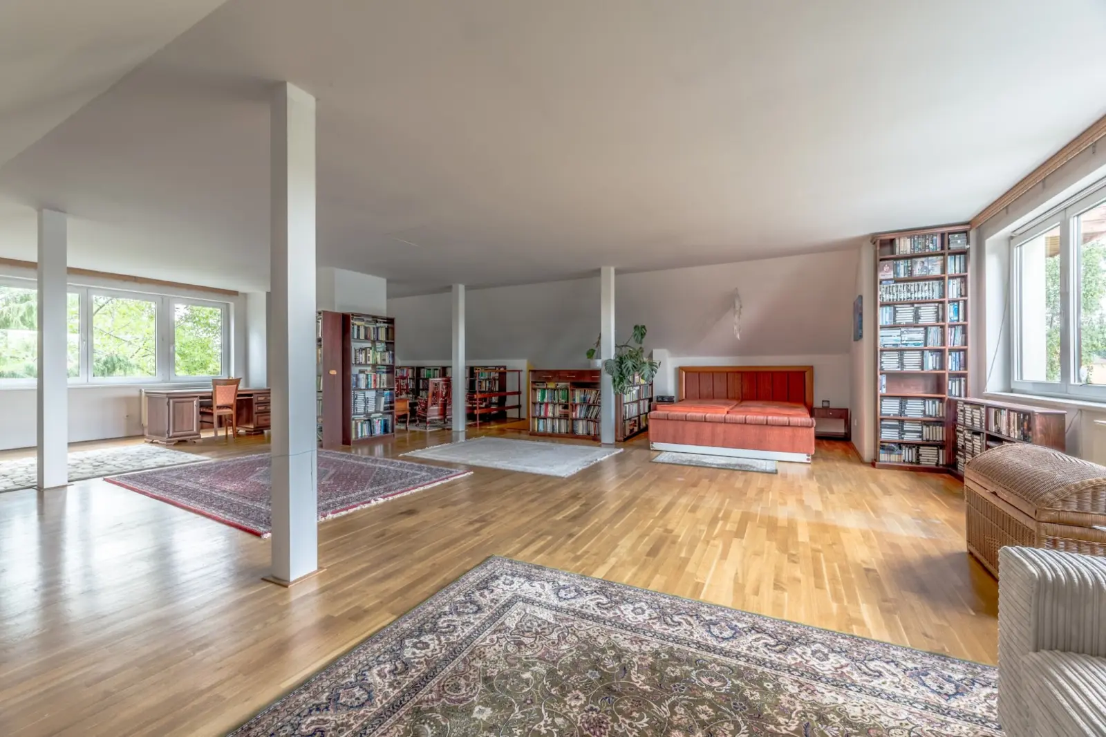 Nabízíme dům, který poskytne novým majitelům široké využití. Jedná se o dvě podlaží a podkroví o ploše celkem 277m2. Dále pak tu je ještě půda o velikosti 50 m2, veranda, která se zároveň využívá jako zimní zahrada, 7 m2. Na pozemku stojí samostatná dílna, 52 m2 a krytý bazén, téměř 16m2. Přízemí: Kuchyně, jídelna, obývací pokoj, koupelna, chodba, schodiště, technická místnost, dílna. Patro: Kuchyně, jsou tu vývody, ale není využívána současnou majitelkou jako kuchyně, jídelna, ložnice, pokoj, kancelář, koupelna, lodžie, chodba 1, chodba 2, schodiště. Podkoroví: Jednoprostorová unikátní místnost přes celé patro, do kterého ústí pouze schodiště. I zde lze vybudovat kuchyni a příslušenství.